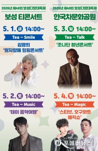 특히, 주무대 핵심 프로그램인 ‘보성 Tea-Concert’는 힐링·음악·소통·퍼포먼스를 결합한 공연 콘텐츠로, 날짜별 차별화된 라인업을 통해 축제의 집중도를 높였다.