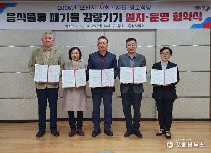 협약에 따라 오산시는 각 기관 경로식당에 음식물류 폐기물 감량기기 설치를 지원하고, 참여 기관은 감량기기의 효율적인 운영·관리와 음식물류 폐기물 감량 실천에 적극 협력하기로 했다.