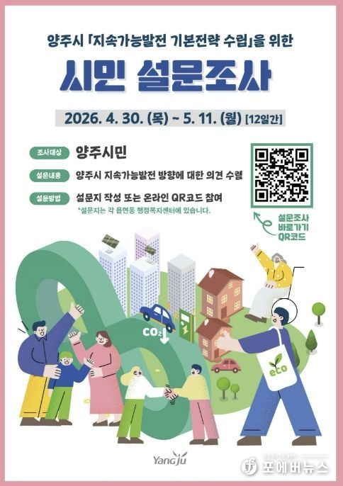[ 포에버뉴스 김경순 기자 ] 양주시는 ‘지속가능발전 기본전략 및 추진계획’ 수립을 위해 시민 의견을 수렴하는 설문조사를 실시한다.