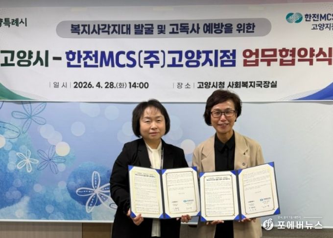 [ 포에버뉴스 김경순 기자 ] 고양특례시는 지난 28일 시청 사회복지국장실에서 한전MCS(주) 고양지점과 위기가구 발굴 및 지원을 위한 ‘온(溫)마음 복지스위치 ON’ 업무협약을 체결했다.