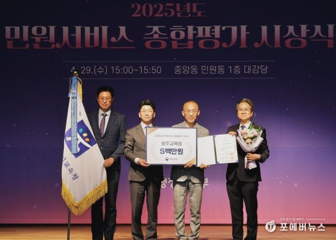[ 포에버뉴스 오명숙 기자 ] 광주시교육청이 행정안전부에서 시행한 ‘2025년 민원서비스 종합평가’에서 전국 시·도교육청 1위를 달성했다.