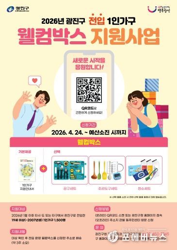 올해는 지원 규모를 확대해 2026년 1월 이후 광진구로 전입한 19세 이상 1인가구 총 1,500명을 대상으로 추진한다.