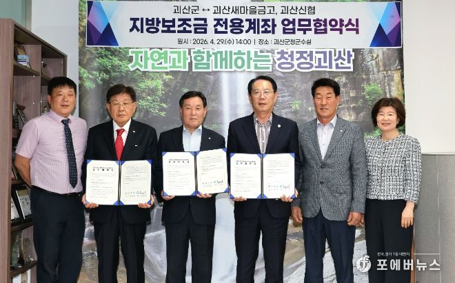 [ 포에버뉴스 사공선 기자 ] 충북 괴산군은 괴산군청 군수실에서 지역 내 괴산새마을금고, 괴산신협 등 2개 금융기관과 지방보조금 전용계좌 개설을 위한 업무협약을 체결했다고 29일 밝혔다.