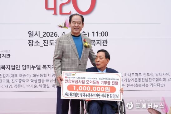 아울러, 이날에는 사회복지법인 임마누엘복지재단(이사장 김경식)이 지역의 발전과 취약계층을 위해 ▲진도군인재육성장학회 ▲고향사랑기부제 ▲모아드림에 각 100만 원씩, 총 300만 원을 기부했으며, 나눔 실천을 위해 ‘장애인사회공헌 420챌린지’를 통해 모금한 42만 원을 모아드림에 기탁 했다.