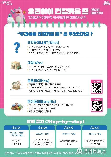 ‘우리아이 건강키움 존’은 어린이보호구역 내 편의점과 마트 등을 대상으로, 우유·두유·달걀 등 영양가가 높은 식품을 어린이 눈높이에 맞춰 우선 진열하고, 안내 표지물을 통해 해당 구역을 쉽게 알아볼 수 있도록 조성하는 사업이다. 어린이의 시선과 동선에 맞춘 진열 환경을 통해 일상에서 자연스럽게 건강한 식품 선택을 유도하는 데 목적이 있다.