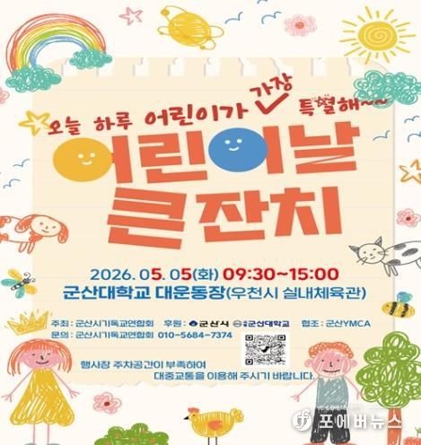 [ 포에버뉴스 이승훈 기자 ] 군산시는 5월 5일 어린이날을 맞아 지역 어린이와 가족들을 위한 다채로운 행사를 월명실내체육관과 군산대학교에서 동시에 개최한다.