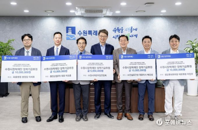 [ 포에버뉴스 김경순 기자 ] 수원시 5개 기업·단체가 “지역인재 양성에 사용해 달라”며 수원시장학재단에 장학기금 총 4500만 원을 기탁했다.