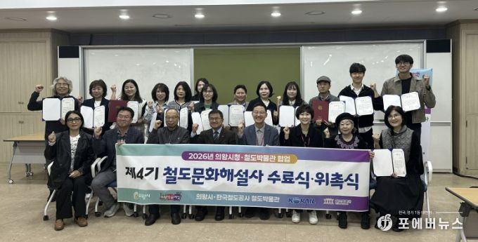 [ 포에버뉴스 김경순 기자 ] 의왕시는 4월 28일 관내 부곡동에 위치한 코레일 인재개발원에서 ‘2026 의왕시민대학 철도문화해설사 심화과정’ 수료식을 개최했다.