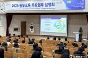 [ 포에버뉴스 오명숙 기자 ] 광주동부교육지원청은 20일 광주시교육청교육연수원 중강당에서 ‘2026년 동부교육 설명회’를 개최했다. 이번 설명회는 올해 추진하는 사업을 시민들에게 설명하고, 이해를 돕기 위해 마련됐다. 이 자리에서 광주동부교육지원청은 그동안 추진해온 ▲광주와 다른 시도 학생이 교류하며 민주시민 역량을 키우는 ‘빛탐인 클래스’ ▲관계 회복을 돕는 ‘The 좋은 회복교실’ ▲새학년 준비를 위한 통합행정자료 제작 등 특색사업과 ▲학습지원대상학생 통합 진단 서비스 ▲학교 예초업무 및 운동장 소금포설 사업 ▲학급 도서 연계 독서토론 한마당 등 새롭게 시작하는 사업에 대해 설명할 예정이다. 이어 23일에는 광주서부교육지원청이 광주광역시교육청시민협치진흥원 대강당에서 ‘2026 서부 주요 업무설명회’를 연다. 광주서부교육지원청은 설명회에서 주요 정책 추진 방향을 안내한다. 주요 내용은 ▲광산구 교육국제화특구 운영 ▲복합 위기 학생 돕는 ‘서부이음프로젝트’ ▲유·초등학교 모래놀이장 소독 지원 등 특색사업과 올해 신규로 도입하거나 확대하는 ▲유치원 무상교육비 4세 확대 지원 ▲초등학교