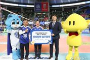 [ 포에버뉴스 사공선 기자 ] 이장우 대전시장은 21일 대전충무체육관에서, 6개월간의 V-리그 대장정에 나서는 연고팀 대전 삼성화재 블루팡스의 승리를 기원하는 시구에 참여했다. 1세트 종료 후에는 삼성화재 블루팡스×꿈돌이 굿즈를 공동 브랜딩을 위한 상호협력 협약을 체결하고, 스포츠마케팅을 확장하기로 했다.