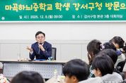 [ 포에버뉴스 김경순 기자 ] 진교훈 서울 강서구청장이 8일 구청 대회의실에서 마곡하늬중학교 3학년 학생들과 직접 대화하며 소통하는 시간을 가졌다. 구는 행정이 어떻게 이뤄지고, 공무원이 어떤 역할을 하는지 학생들이 현장에서 직접 체험하며 이해할 수 있도록 이날 자리를 마련했다. 3학년 1반과 4반 학생 40여 명이 구청을 찾아 진 구청장과 만났다. 진 구청장은 “구청에 직접 와보니깐 어때요?”라고 질문을 하며 대화를 이끌어갔다. 학생들의 장난스러운 질문에도 유쾌하게 답변했고 대화 내내 웃음이 끊이지 않았다. 길거리 흡연 등 생활불편부터 강서구의 주요 정책과 예산 규모, 10년 후 강서구에 필요한 정책에 이르기까지 폭넓게 대화했다. 진 구청장은 “마곡지구 발전과 맞물려 유동인구가 많아짐에 따라 간접흡연 피해 민원도 늘고 있다”며 “흡연 단속과 계도를 병행해 피해를 줄여나가겠다”고 말했다. 마곡 통합신청사와 신경제축 조성 등 굵직한 사업에 대해서는 학생들의 눈높이에 맞춰 알기 쉽게 설명했다. 10년 후 정책에 대해선 “변화의 속도가 매우 빠르기 때문에 기술의
