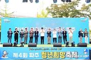 [ 포에버뉴스 김경순 기자 ] 파주시는 지난 27일 금릉역 앞 중앙광장에서 열린 ‘제4회 파주 청년희망축제’가 시민들의 뜨거운 호응 속에 성공적으로 마무리됐다고 밝혔다. 올해 축제는 ‘파주청년, 다시 도약하다!(Paju Youth Again, Jump Up!)’을 주제로, 도약하는 청년세대의 열정과 활력을 시민과 함께 나누는 장으로 마련됐다. 이번 축제의 백미는 개막식과 함께 진행된 ‘파주 청년 비전선포식’이었다. 청년정책협의체 공동위원장은 무대에서 ‘청년이 뿌리내리는 도시, 파주’라는 비전을 선포하며, 청년과 지역사회가 함께 나아갈 미래의 방향을 제시했다. 특히 청년들이 직접 낭독한 선언문과 청년친화도시 지정을 위한 기념행사는 파주시의 확고한 의지를 대외적으로 알리는 계기가 됐다. 오후 2시부터 8시까지 진행된 이번 축제는 ▲사전공연 ▲청년 골든벨 ▲청년 가요제 ▲청년공간 특별강좌 ▲프리미엄 수제 맥주 시음 ▲청년창업가 플리마켓 ▲무료 체험공간 ▲대형 ‘파랑’ 포토존 등 다채로운 프로그램으로 꾸려졌다. 가요제 무대에서는 청년들의 끼와 열정이 빛났으며, 청년창업가 판매공간 및 수제 맥주 시음 공간