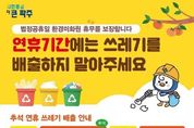 [ 포에버뉴스 김경순 기자 ] 파주시는 환경미화원 휴무 보장을 위해 추석 연휴 기간인 10월 4일부터 10월 6일, 10월 8일부터 10월 9일까지는 생활폐기물을 배출해서는 안 되며, 이 기간 동안에는 생활쓰레기 수거가 중단된다고 밝혔다. 단, 운정신도시 내 자동집하시설이 설치된 지역은 추석 연휴에도 평소처럼 집하시설을 통해 종량제봉투를 정상적으로 배출할 수 있고, 연휴 마지막 날인 10월 9일 18시부터는 쓰레기 배출이 가능하다. 시는 추석 명절과 아시아태평양경제협력체(APEC) 정상회의를 계기로, 행정안전부 주관 ‘대한민국 새단장 캠페인’에 동참해 9월 22일부터 10월 1일까지 중점 청소 및 단속 기간으로 지정했다. 이 기간 동안 추석맞이 대청소를 통해 청소 취약지역을 정비하고, 쓰레기 무단투기 예방을 위한 집중 단속을 실시해 연휴 기간 동안 청결한 환경을 유지할 계획이다. 또한 시는 연휴 기간인 10월 3일부터 10월 9일까지 시민들의 불편을 최소화하기 위해 상황반을 운영하고, 청소대행업체에서는 15개 기동반을 배치해 쓰레기 관련 불편 사항과 민원을 신속하게 처리할 계획이다. 특히 야당역,