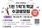 [ 포에버뉴스 김경순 기자 ] 수원문화재단은 남녀노소 누구나 악기를 배우고 즐길 수 있는 ‘수원은학교 '1인 1악기 학교'’의 수강생을 10월 10일까지 선착순으로 모집한다. ‘수원은학교 '1인 1악기 학교'’는 문화도시 조성사업의 일환으로, 시민의 문화예술 향유 기회를 확대하여 생활문화를 활성화하기 위해 추진하는 사업이다. 이번 강좌는 △대금(초급, 중급) △소금(초급, 중급) △오카리나 △칼림바 △우쿨렐레 △바이올린 등 총 8개 강좌로 구성됐으며, 공공한옥, 어린이도서관, 공연장 등 수원 전역의 다양한 문화예술 시설에서 운영된다. 수강신청은 온라인으로 가능하며, 수강료는 1개 강좌당 40,000원으로 악기연주와 문화예술에 관심이 있는 시민 누구나 신청할 수 있다. 특히 참여자를 대상으로 악기를 무료로 대여해주어, 악기를 보유하지 않은 시민도 부담 없이 강좌를 수강할 수 있다. 수원문화재단 관계자는 “평소 관심이 있던 악기를 직접 배우고 연주해 보며 일상에 예술적 감성을 더할 수 있는 계기가 되기를 기대한다”며, “악기를 처음 접하는 분들도 쉽게 참여할 수 있도록 초급과정과 악기 대여 서비스를