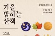 [ 포에버뉴스 김경순 기자 ] 의정부과학도서관은 10월 30일부터 11월 1일까지 의정부천문대에서 특별 관측 행사 ‘가을 밤하늘 산책’을 운영한다. 이번 행사는 깊어가는 가을밤, 시민들이 천체 관측을 통해 자연과 과학의 아름다움을 체험할 수 있도록 마련했다. 행사는 오후 7시부터 9시까지 진행된다. 전문 해설과 함께 실제 관측을 체험할 수 있는 참여형 행사로 ▲달과 토성 관측 ▲천문우주 영상물 시청 ▲전시실 체험 ▲소원카드 달기 등으로 구성된다. 참여자들은 달과 토성의 고리를 직접 관측하고, 소원카드에 각자의 바람을 담아 별빛 아래에 걸어보는 체험도 즐길 수 있다. 행사는 과학문화에 대한 시민의 관심을 높이고 가족 단위의 참여를 확대하기 위해 무료로 진행한다. 별도의 사전 접수 없이 행사 당일 현장에서 참여할 수 있다. 과학도서관 관계자는 “의정부천문대가 과학과 자연이 어우러진 문화공간으로 자리잡을 수 있도록 앞으로도 다양한 프로그램을 운영할 것”이라며 “이번 특별 관측을 통해 가족과 함께 밤하늘을 바라보며 뜻깊은 시간을 보내길 바란다”고 말했다.