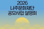[ 포에버뉴스 오명숙 기자 ] 나주문화재단이 2026년도에 추진할 문화사업 전반을 시민과 공유하고 공모 참여 기회를 확대하기 위해 설명회를 개최한다. 나주문화재단은 오는 2월 24일 나빌레라문화센터 소극장에서 ‘2026년 나주문화재단 통합 공모사업설명회’를 연다고 13일 밝혔다. 이번 설명회는 지역민과 예술인을 대상으로 재단의 연중 사업을 종합적으로 안내하고 공모사업 참여를 독려하기 위해 마련했다. 재단은 2026년 추진 예정 사업 전반과 함께 총 5건의 공모사업 개요, 신청 방법, 서식 작성 요령 등을 상세히 설명할 계획이다. 설명 대상 사업은 나주형 커뮤니티 발굴사업 ‘취향살롱’, 지역문화 활성화 지원사업, 나빌레라문화센터 전시공간 지원 공모, 나빌레라문화센터 창작실 입주작가 공모, 미디어 콘텐츠 촬영 장소 지원 등 5건이다. 설명회에서는 사업 안내와 더불어 현장 질의응답 시간을 운영해 시민과 예술인의 이해도를 높이고 다양한 의견을 수렴할 예정이다. 이를 통해 재단과 지역 문화 주체 간 소통을 강화하고 정책 반영의 기반을 마련한다는 방침이다. 특히 직장인