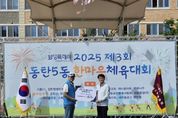 [ 포에버뉴스 김경순 기자 ] 지난 21일 ‘제3회 동탄5동 한마음 체육대회’가 동탄5동 체육진흥회 주관으로 다원이음터 축구장에서 성황리에 개최됐다. 이번 대회는 주민들의 화합과 소통을 통해 건강을 증진하고 공동체 의식을 다지기 위해 마련됐으며, 400여 명의 주민과 내빈들이 함께해 활기찬 분위기를 더했다. 행사는 풍물 공연과 색소폰 연주로 흥겨운 막을 올렸고, 개회식에서는 모범시민 표창 수여와 내빈들의 축사가 이어졌다. 또한, 동탄5동 체육진흥회와 감탄정형외과가 의료 지원·후원 협약을 체결해 향후 체육대회를 비롯한 다양한 동 행사에서 의료 지원과 후원을 지속하기로 약속하며 지역사회 상생의 의미를 더했다. 본 경기는 볼풀공 서바이벌, 큰 공 배구, 줄다리기 등 남녀노소가 모두 참여할 수 있는 명랑운동회 종목으로 진행돼 웃음과 열기가 가득했다. 이어진 태권도 축하공연은 참가자들에게 힘찬 에너지를 전하며 분위기를 한층 끌어올렸다. 또한 체험부스 운영과 경품 추첨 이벤트도 마련돼 가족 단위 참가자들에게 다채로운 즐길 거리를 제공했다. 풍성한 상품과 이벤트는 주민들의 큰 호응을 얻으며 축제의
