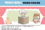 [ 포에버뉴스 김경순 기자 ] 안성시 중앙도서관은 오는 10월 29일부터 12월 24일까지 매주 수요일 오전 10시부터 12시까지(총9회) 진행되는 『옛이야기 할머니』양성과정의 수강생을 모집한다. 이번 과정은 우리 전통 설화와 구전문화를 이해하고, 이를 바탕으로 어린이들에게 옛이야기를 들려줄 수 있는 이야기 구연 역량을 키우는 특화 교육 프로그램으로 교육은 송경애 강사(한국국학진흥원 및 아름다운 이야기 할머니 교육강사)가 진행하며, 이야기 전달 기법, 발성 훈련, 스토리텔링 실습 등 실질적인 교육 중심으로 구성된다. 참여 대상은 60세 이상 여성 20명으로, 접수는 10월 14일부터 도서관 홈페이지, 전화 또는 방문을 통해 신청할 수 있다. 도서관 관계자는 “지역 어르신들이 삶의 지혜와 전통 이야기를 전하며 세대 간 소통의 다리를 놓는 뜻깊은 과정이 될 것이고 본 과정을 수료한 참여자들은 2026년 ‘책 읽어주기’ 자원봉사 프로그램에 참여할 수 있도록 안내할 계획이다.”라고 전했다.