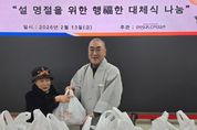[ 포에버뉴스 김경순 기자 ] 대한불교조계종사회복지재단이 운영하는 안성시노인복지관은 설 명절 연휴를 맞아 2월 13일 무료급식 이용 어르신들의 결식 예방과 안정적인 식생활 지원을 위해 ‘2026년 설 명절을 위한 행福한 대체식 나눔’을 진행했다. 이번 행사는 설 연휴 기간 복지관 무료급식 서비스가 잠시 중단됨에 따라, 경제적·신체적 여건으로 식사 준비에 어려움을 겪는 어르신을 지원하기 위해 마련됐으며, 특히 독거노인 및 고령 취약계층 어르신들이 명절 기간에도 따뜻하고 균형 잡힌 식사를 하실 수 있도록 돕는 데 목적을 두었다. 대체식 나눔은 본관 경로식당과 공도 경로식당에서 진행됐으며, 본관 200명과 공도 120명 등 총 320명의 무료급식 이용 어르신에게 명절 대체식이 전달됐다. 이번에 제공된 대체식은 떡국 떡, 사골곰탕, 버섯 등 명절에 어울리는 식재료로 구성해 어르신들이 가정에서도 간편하게 명절 식사를 준비할 수 있도록 했다. 가섭 안성시노인복지관장은 “설 명절은 가족과 함께하는 따뜻한 시간이지만, 무료급식 이용 어르신들께는 오히려 결식과 외로움이 커질 수 있는 시기”라며 “앞으로도 명절이나 급식 공백