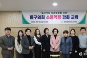 [ 포에버뉴스 김경순 기자 ] 인천 동구의회는 지난 19일 의회 세미나실에서 구의원과 의회사무과 공무원을 대상으로 소통 역량 강화 교육을 실시했다. 이번 교육은 이미지 컨설팅 및 커뮤니케이션 교육 전문강사인 김미선 강사를 초빙해 ‘언어적·비언어적 커뮤니케이션 능력의 활용 및 전략 수립’을 주제로 강의가 진행됐다. 김미선 강사는 이날 갈등 상황에서의 대화 기술과 정책 설명 시 설득력을 높이는 언어적 소통 기법을 소개했다. 아울러 의정활동 과정에서 주민에게 신뢰를 줄 수 있는 이미지 등 비언어적 소통 기법의 중요성도 강조했다. 또한 의원 개인별 이미지에 적합한 표정, 자세, 외형 등 다양한 전략을 제시하며 주민과의 긍정적 첫인상을 형성하고 소통의 신뢰도를 높일 수 있는 실질적인 방법을 안내했다. 유옥분 의장은 “의정활동에서의 소통 능력은 정책 메시지를 효과적으로 전달하는 중요한 역량”이라며, “이번 교육이 의원들이 주민과의 소통에서 신뢰를 구축하고, 의정활동을 보다 원활하게 수행하는 데 큰 도움이 될 것”이라고 말했다.