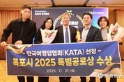 [ 포에버뉴스 오명숙 기자 ] 목포시가 한국여행업협회(KATA)가 선정한 ‘2025 KATA 특별공로상’을 수상했다. 한국여행업협회는 국내‧외 인바운드·아웃바운드 여행사 3,000여 개와 관광업계, 항공사 등 100여 개 유관기관이 참여하는 단체로, 문체부와 함께 국내외 관광 활성화와 관광산업 발전을 위한 다양한 사업을 추진하고 있다. 협회는 지난 11월 21일 서울 롯데호텔에서 열린 2025 KATA 정기총회에서 전국 지자체 중 유일하게 목포시에 특별공로상을 수여했다. 이번 수상은 대한민국 관광거점도시인 목포시가 문체부 및 KATA와 함께 지난 6월 ‘제38차 한·대만 관광교류회의’를 성공적으로 개최하고, 국내·외 관광객 유치를 위한 다양한 세일즈마케팅에 적극 협력한 공로를 높이 평가한 결과다. 전국 3,000여 여행업계 대표들의 감사와 지지로 신설된 상이라는 점에서 의미가 더욱 크다. 지난해 ‘대한민국 여행하기 가장 좋은 도시’, ‘2025 미식관광도시’ 등 대표 브랜드 대상을 수상한 목포시는 올해 국제남도미식산업박람회 등 주요 국제행사를 통해 글로벌 관광거점도시로서의 경쟁력을 강