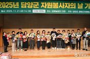 [ 포에버뉴스 오명숙 기자 ] 담양군은 21일 담빛농업관에서 자원봉사자 200여 명이 참석한 가운데 ‘2025 담양군자원봉사자 기념식’을 열고 올해 지역에서 활동한 자원봉사자들의 노고를 격려했다. 이번 기념식은 지역사회 곳곳에서 활동한 자원봉사자들의 헌신을 기리고 자원봉사 문화 확산을 도모하기 위해 마련됐다. 행사는 유공자 표창패 수여, 성과보고, 역량강화 교육, 화합 한마당 순으로 진행됐으며, 다양한 프로그램을 통해 참여자들의 호응을 얻었다. 이날 재난 복구, 취약계층 돌봄, 지역 환경 개선 등 여러 분야에서 활동한 자원봉사자에 대한 표창이 이어졌고, 역량강화 교육과 화합 프로그램은 참석자 간 소통과 연대의 시간이 됐다. 정철원 담양군수는 “자원봉사자들의 따뜻한 실천이 담양군을 더 나은 지역으로 만드는 힘이 되고 있다”며 “앞으로도 자원봉사 활성화를 위한 지원을 지속하겠다”고 말했다.