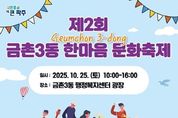 [ 포에버뉴스 김경순 기자 ] 파주시 금촌3동 ‘제2회 한마음 문화축제’가 오는 25일 10시, 금촌3동 행정복지센터 광장에서 개최된다. 금촌3동 주민자치회가 주최하는 이번 축제는 주민들이 바쁜 일상에서 벗어나 지친 마음을 달래고 서로 소통하는 화합의 장을 만들기 위해 마련됐으며, 발표회를 통해 금촌3동 주민자치센터 수강생들이 그동안 연습해 온 성과도 아낌없이 선보일 예정이다. 행사는 ▲주민자치센터 수강생들의 성과 발표회 ▲주민이 직접 꾸미는 한마음 예술제 ▲벼룩시장(플리마켓) ▲공예, 원예, 친환경 전기자전거 등의 다양한 체험활동 ▲먹거리 나눔 등 가을날의 다채로운 즐길 거리를 제공할 계획이다. 남인우 금촌3동 주민자치회장은 “금촌3동 한마음 문화축제가 제2회를 맞이해, 올해도 축제를 통해 주민들을 만날 수 있어 기쁘다”라며 “축적된 경험을 통해 더 풍성하고 주민들이 즐길 수 있는 문화축제로 자리매김할 수 있기를 기대한다”라고 전했다.