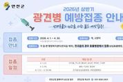 [ 포에버뉴스 김경순 기자 ] 연천군은 오는 4월 1일부터 4월 30일까지 ‘2026년 상반기 광견병 예방접종’을 일제히 실시한다고 밝혔다. 실시 대상은 연천군 관내 가정에서 사육하는 개, 고양이 등 광견병 전염 우려가 있는 동물이다. 광견병 바이러스가 매개하는 감염증인 광견병은 제3급 법정 감염병으로 지정된 인수공통전염병이다. 광견병에 걸린 동물에 의해 사람이 감염될 수 있으며 발병하면 치사율이 거의 100%에 이른다. 연천군은 4월 1일, 2일 이틀간 관내 공중 수의사의 각 읍면 행정복지센터 방문을 통해 군민들에게 기간 중 할인된 가격인 5,000원에 예방접종을 실시할 예정이다. 또한 해당 기간에 접종하지 못한 군민들을 위하여 사랑동물병원(전곡읍 전곡로 140), 성심동물병원(전곡읍 전곡역로 47)에서 기간 내 상시 접종할 수 있도록 협력체계를 구축했다.