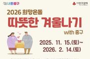 [ 포에버뉴스 김경순 기자 ] 서울 중구가 지난해 11월 15일부터 사회복지공동모금회와 함께 진행 중인‘2026 희망온돌 따뜻한 겨울나기’사업에 지난 1월 13일 기준, 구의 목표 모금액의 약 69%인 12억1천여만원의 성금·품이 모였다고 밝혔다. 구는 설 명절을 앞두고 있는 만큼 목표액을 달성할 수 있을 것으로 내다보고 있다. 이번에도 모금이 시작되자마자 지역사회 곳곳에서 온정 이어졌다. 개인 후원자 조양 씨가 6천만원, ㈜투데이아트 대표 박장선 씨가 4천만원을, 메리츠화재해상보험(주)와 새마을금고 명동지점에서 취약 주민을 위해 각각 5천만원을 쾌척했다. 한화손해사정도 3천만원을, 한국캐피탈은 2천만 원을 기탁했다. ㈜유진건업과 ㈜백송기업은 각각 1천만 원을 중구어린이집연합회는 1천오백만 원, 중구교구협의회와 지지무역은 각각 1천만 원을 후원했다. 관내 기업들이 성품으로 주민 일상에 힘을 보탰다. BAT로스만스는 간편식과 유산균, 목욕·방한용품을 300가구에 전달했고, DIG에어가스는 라면 200박스, 서원라이프는 쌀 150포, 우리원헬스케어에서는 쌀 200포를 후원해 이웃들의 식탁을 채웠다.