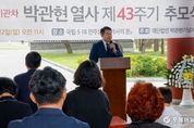[ 포에버뉴스 오명숙 기자 ] 이정선 광주시교육감이 12일 국립5·18민주묘지 ‘역사의 문’ 앞에서 열린 ‘민주화의 새벽기관차 박관현 열사 제43주기 추모식’에 참석했다. 이날 추모식에는 이정선 교육감을 비롯해, 강기정 광주광역시장, 윤목현 5·18기념재단 이사장, 이개호 영광군 국회의원, 유족 및 시민사회단체 관계자 등이 참여해 열사의 숭고한 뜻을 기렸다. 이정선 교육감은 “박관현 열사의 숭고한 정신을 잊지 않고 기억하는 길은 5·18 정신을 미래 세대에 계승하고 발전시키는 교육이다”며, “오월 정신을 전국으로, 세계로 알리고 확산하여 민주주의와 인권, 평화의 가치를 교육 현장에서 실천해 나가겠다”고 밝혔다.