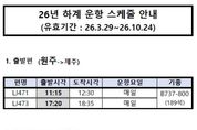 [ 포에버뉴스 방미정 기자 ] 원주공항의 2026년 하계(3월 29일∼10월 24일) 제주 항공편이 동계와 같이 오전·오후 시간대 편성으로 유지된다. 원주공항에 취항한 진에어의 하계 항공기 운항 일정이 국토교통부의 최종 승인으로 확정됨에 따라, 이전과 같이 오전·오후 시간대 편성이 유지되며 출발시간만 일부 변경된다. 3월 29일부터 원주공항에서 출발하는 제주행 항공편은 종전 오전 11시 10분·오후 4시 35분에서 오전 11시 15분·오후 5시 20분으로 변경되며, 제주에서 원주공항으로 돌아오는 항공편은 종전 오전 9시 5분·오후 2시 30분에서 오전 9시 5분·오후 3시 20분으로 조정된다. 한편 2025년 원주공항을 이용한 탑승객 수는 20만 1,916명으로, 2023년부터 3년 연속 20만 명을 돌파하고 있다. 탑승률 또한 2021년부터 2025년까지 57.7%→73%→78.8%→78.9%→77.1%를 기록하며 80%에 근접하는 추세를 보였다. 원강수 원주시장은 “원주공항의 구조적 불편함이 개선되고 이용객 편의시설 등이 확충되면 더 많은 수요가 발생할 것”이라며, “내년 개항 30주년을 맞이