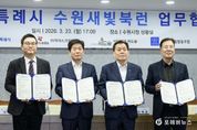 [ 포에버뉴스 김경순 기자 ] 수원특례시가 어린이·청소년 독서 문화를 확산하는 ‘수원새빛북런’ 사업을 추진한다. 수원시와 ㈜아이스크림에듀, (사)씨드(Seed)숲, 수원시서점협동조합은 23일 시청 상황실에서 ‘수원새빛북런(Book Learn) 업무협약’을 체결하고, 협력을 약속했다. 수원새빛북런은 민간의 우수한 독서교육 콘텐츠로 미래를 이끌어 갈 독서 인재를 키우는 사회공헌사업이다. 4~8월에 독서챌린지 앱·홈페이지에서 독서룰 인증하고, 독후감을 작성하는 ‘수원새빛북런 챌린지’를 진행한다. 9~10월에는 코스튬 퍼레이드, 성곽 걷기, 체험존 운영 등으로 진행되는 ‘수원새빛북런 데이’를 연다. 협약에 따라 수원시는 독서문화 확산을 위한 행정 지원을 하고, (사)씨드숲은 수원새빛북런 사업 운영을 총괄한다. ㈜아이스크림에듀는 독서 인증 챌린지 콘텐츠를 제공하고, 수원시서점협동조합은 지역 서점을 기반으로 한 독서문화프로그램·캠페인 등 독서 행사 개최에 협력한다. 이날 협약식에는 이재준 수원시장과 ㈜아이스크림에듀 대표, (사)씨드숲 사무총장, 수원시서점협동조합 이사장 등이 참석했다.