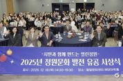 [ 포에버뉴스 김경순 기자 ] 수원특례시는 18일 팔달문화센터 예당마루홀에서 ‘2025년 정원문화 발전 유공 시상식’을 열었다. 정원문화 발전에 기여한 시민과 단체 등에 수원시장상(47개)과 수원시의회 의장상(7개)을 수여했다. 시상은 표창장·감사패 수여, 시민정원 경연대회, 베스트 관리상, 올해의 정원인상 등 분야별로 진행됐다. 지난 10월 효원공원에서 열렸던 ‘2025년 수원시 시민정원 경연대회’ 수상팀들을 시상했다. 하나의 물방울이 만들어내는 무한한 생명의 파장을 표현한 ‘완뚝원정대’의 ‘리플(ripple) 가든’이 대상을 받았다. 어린 꽃이 꿈꾸는 산의 이미지를 담은 ‘진달래동산 꽃뫼’ 팀의 ‘어린 꽃이 꿈꾸는 뫼(산)’이 최우수상, 빛과 생명의 흐름을 표현한 ‘빛나게’ 팀의 ‘Flowing Light, Flowering Life(플로잉 라이트, 플라워링 라이프’가 우수상을 받았다. 이재준 수원시장은 “도심 속 열린 정원은 시민에게 휴식처가 되고, 기후 위기 대응에는 힘이 된다”며 “정원을 가꾼 수상자 노력에 감사하며 시민 일상에 초록이 늘도록 지원을 이어가겠다”고 말했다.