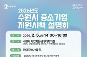 [ 포에버뉴스 김경순 기자 ] 수원특례시가 ‘2026 중소기업 지원시책 설명회’에 참가할 수원시 중소기업 대표·임직원 100여 명을 1월 30일까지 모집한다. ‘2026년 중소기업 지원시책 설명회’는 2월 5일 오후 2시부터 4시까지 수원시 기업지원센터 대회의실에서 열린다. 수원시와 ▲국세청 ▲경기지방중소벤처기업청 ▲수원고용복지플러스센터 ▲경기도경제과학진흥원 ▲수원도시공사 ▲수원상공회의소 ▲수원산업단지관리공단 ▲경기벤처기업협회 ▲수원기업새빛펀드 운용사(6개) ▲비자코리아 ▲한국건설생활환경시험연구원(KCL) 등 11개 기관이 참여해 각 기관의 기업지원 시책을 설명한다. 수원시가 자금 지원, 기술개발·수출 지원 사업 등 기업지원 시책을 설명한 후 유관기관들이 지원사업을 안내한다. 2차 수원기업새빛펀드 운용사들은 투자 시책을 설명한다. 설명회 후 질의응답이 이어진다. 참가를 원하는 기업인은 1월 30일까지 온라인으로 신청해야 한다. 홍보물의 큐알 코드를 스마트폰으로 스캔하면 온라인 신청 페이지로 연결된다. 수원시 관계자는 “유관기관과 유기적인 협조를 바탕으로 종합적인 기업 지원체계를 구축했