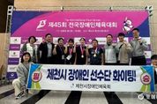 [ 포에버뉴스 사공선 기자 ] 제45회 전국장애인체육대회에 출전한 제천시장애인선수단이 눈부신 성적을 기록하며 충청북도가 목표했던 종합 4위 달성에 크게 기여했다. 지난 10월 31일부터 11월 5일까지 6일간 부산광역시 일원에서 개최된 이번 대회에 제천시선수단은 충청북도를 대표해 역도 등 총 11개 종목 31명이 참가해 금메달 8개, 은메달 4개, 동메달 2개를 획득하는 쾌거를 달성했다. 역도 백경옥, 유우정 선수는 여자 50kg급, 72kg급 데드리프트, 스쿼트 종합에서 한국신기록을 기록했다. 특히 역도 백경옥 선수는 이번 대회까지 3년 연속 한국신기록을 새로 썼다. 또한 육상 이영애 선수는 여자 원반, 창, 포환던지기에서 3관왕에 오르며 충북 육상의 위상을 높였다. 이밖에도 수영, 축구, 역도에서 은·동메달을 추가하며 이번 대회에서 제천시장애인선수단의 실력을 유감없이 발휘했다. 김창규 제천시장(제천시장애인체육회장)은 “제천을 대표해 끊임없이 노력해주신 선수단 여러분께 진심으로 감사드린다”며, “제천시 장애인 체육 발전과 더불어 제천시 장애인 복지 개선을 위해 지속적으로 노력해 나가