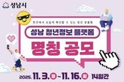 [ 포에버뉴스 김경순 기자 ] 성남시는 오는 11월 16일까지 청년 정보 플랫폼 명칭을 공모한다. 해당 플랫폼은 성남시 청년정책과 지원사업, 청년 활동 공간, 행사 정보 등을 한곳에서 손쉽게 확인할 수 있는 온라인 통합 창구로, 내년 1월 서비스 개시 예정이다. 시는 이러한 성남 청년정보 플랫폼의 목적과 기능 등을 함축적으로 표현하는 명칭을 찾는다. 성남시민 누구나 참여할 수 있으며, 1명당 1개 명칭만 응모할 수 있다. 응모하려면 네이버폼 온라인을 접속해 제안 명칭(10자 이내)과 제안 사유(15자 이상) 적어 ‘제출 버튼’을 누르면 된다. 시는 서면 심사(11.17~21), 성남시청 홈페이지를 통한 시민 선호도 온라인 투표(11.24~12.4)를 거쳐 오는 12월 10일 당선작 5점을 선정한다. 선정자에게는 최우수(1명) 50만원, 우수(2명) 각 20만 원, 장려(2명) 각 5만원 등 총 100만원의 시상금을 성남사랑상품권으로 지급한다. 시 관계자는 “청년정책의 얼굴이 될 이름을 시민이 직접 정하는 뜻깊은 과정”이라면서 “청년이 공감하고 부르기 쉬운 이름