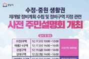 [ 포에버뉴스 김경순 기자 ] 성남시는 오는 12월 17일 수진2구역을 시작으로 수정·중원 생활권 5개 구역의 재개발 정비계획 수립 및 정비구역 지정에 대한 사전 주민설명회를 순차적으로 개최한다. 이번 주민설명회는 지난 9월 23일 착수한 수진2, 태평2‧4, 산성, 단대, 상대원1‧3 등 5개 구역의 ‘재개발 정비계획 수립 및 정비구역 지정 용역’을 통해 검토된 각 구역의 정비계획안과 추정분담금에 대한 주민 의견을 청취하기 위해 마련됐다. 정비계획안에는 각 구역의 토지이용계획, 도시계획시설 및 생활인프라(SOC) 확충 방안, 건축물 계획 등이 포함된다. 사전 주민설명회 일정은 17일 오전 10시 수진2구역, 오후 2시 태평2‧4구역을 비롯해, 19일 오후 2시 산성구역과 22일 오후 2시 단대구역 설명회가 수정구청 대회의실에서 진행된다. 24일 오후 2시에는 상대원1‧3구역 설명회가 중원구청 대회의실에서 열린다. 주민설명회는 별도의 사전 등록 없이 해당 구역 토지등소유자를 비롯해 재개발 사업에 관심 있는 주민 누구나 참석할 수 있다. 신상진 성남시장은 “정비계획 수립 단계에서 주민과 의견을 나누