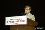 [ 포에버뉴스 김경순 기자 ] 서울 중구가 제29회 노인의 날(10월 2일)을 기념해 지난 2일 중구 구민회관 대강당에서 기념식과 함께 어르신 어울림 한마당을 열었다. 이날 행사에는 어르신과 내빈 등 500여 명이 참석해 어르신들에 대한 노고에 존경과 감사를 표했다. 1부에서는 노인 복지와 지역 발전을 위해 헌신하신 65세 이상 모범어르신 3명과 노인복지 기여자 9명, 기여 단체 1곳에 표창이 수여됐다. 2부 행사에서는 초대가수 축하공연과 어르신 장기자랑이 펼쳐졌다. 어르신으로 구성된 11팀이 무대에 올라 노래와 악기 연주 실력을 뽐내며 흥겨운 시간을 만들었다. 김 구청장도 '고맙소'라는 노래를 불러 어르신들의 호응을 얻었다. 행사장 로비에는 영양 건강 체험 부스가 마련되어 어르신들이 드신 식사의 칼로리와 나트륨양 등을 직접 계산해보고 균형잡힌 식사법에 대한 상담도 받을수 있었으며, 추척사진관 부스에서는 교복을 입고 사진을 찍으며 옛 추억을 떠올렸다. 행사에는 한국삭도공업주식회사, 대신자산신탁, 한마음라이온스, 중구자원봉사센터를 비롯한 여러 업체와 기관이 경품, 기념품, 간식 등을 후원해 더욱 풍