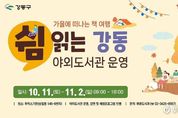 [ 포에버뉴스 김경순 기자 ] 강동구는 10월 11일부터 11월 2일까지 한 달간 파믹스가든(상일동 145-6)에서 주말 야외 도서관 '쉼 읽는 강동'을 운영한다고 밝혔다. ‘가을에 떠나는 책 여행’이라는 주제로 열리는 이번 행사에는 행사 기간 매주 토요일 ‘기억 쉼’, ‘일상 쉼’, ‘웰니스 쉼’, ‘함께 쉼’을 테마로 프로그램을 운영한다. 10월 11일(기억 쉼) 프로그램으로는 거북선 만들기 등의 체험과 ‘최강보 아티스트’의 비눗방울 마술공연이 진행된다. 특히, 이날 오전 10시에는 ‘큰별쌤’ 최태성 강사의 특강이 함께 진행되어 행사의 첫날을 빛낼 예정이다. 10월 18일(일상 쉼)에는 손수건 만들기 등의 체험과 그림책 독서와 원예 활동을 접목한 ‘그림책 가드닝’ 등의 프로그램이 운영된다. 10월 25일(웰니스 쉼)에는 자연을 탐구하는 프로그램이 진행된다. 꽃·나뭇잎 등으로 책갈피를 만드는 체험은 물론, 숲 해설가와 함께하는 자연 관찰 프로그램인 ‘그림책 숲 해설’이 진행된다. 11월 1일(함께 쉼)에는 샌드위치 만들기 프로그램을 비롯해 참여자가 직접 중고책을 플리마켓을 운영하는 참여형 프로그램들이 진행된다. &nbs