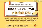 [ 포에버뉴스 김경순 기자 ] 인천광역시교육청계양도서관은 인천시민을 대상으로 11월 7일부터 21일까지 시민저자학교 2기 프로그램 ‘매달 한 권 읽고 쓰기’를 운영한다. ‘매달 한 권 읽고 쓰기’는 한 권의 책을 깊이 읽고 그 안에서 발견한 생각과 감정을 글로 표현하는 시민 창작형 독서 프로그램으로 11월의 주제 도서는 김금희 작가의 ‘대온실 수리 보고서’이다. 참가자들은 작품을 중심으로 서로의 다름을 이해하고 글쓰기를 통해 자신과 세상을 성찰하는 시간을 갖는다. 참가 신청은 10월 27일부터 오전 9시부터 계양도서관 누리집에서 가능하며, 자세한 내용은 누리집 공지사항을 참고하거나 종합자료실로 문의하면 된다.