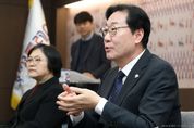 [ 포에버뉴스 사공선 기자 ] 강원특별자치도는 2월 25일 오후 4시 40분, 전국동계체전 개회식을 앞두고 유승민 대한체육회장을 만나 면담을 갖고 전국체전 유치 등 체육현안에 대해 논의했다. 김진태 지사는 이 자리에서 “도는 올해 사상 처음으로 전국장애인동계체전 종합 우승을 달성했고, 전국장애인동계체전과 전국동계체전을 5년 연속 유치하며 대한민국 동계스포츠 중심지로 자리매김했다”며, “이 같은 성과를 바탕으로 강원 체육 르네상스 시대를 이어가고 있다”고 강조했다. 이어 “이 기세를 이어 2015년 이후 도에서 개최되지 않았던 전국체전을 15년 만인 2030년에 유치하길 희망한다”고 밝혔다. 이에 대해 유승민 대한체육회장은 “지사님께서 의지를 밝히신만큼 도 체육회장님과 함께 적극적으로 검토하겠다”며, “아울러 동계체전 개최지에 대해서는 하계체전 유치에도 별도 혜택을 주는 방안을 검토하겠다”라고 답했다.