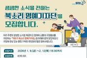 [ 포에버뉴스 오명숙 기자 ] 광주광역시 북구는 구정 소식지인 ‘북소리’를 통해 지역의 생생한 소식을 전달하는 명예기자단을 모집한다고 14일 밝혔다. ‘북소리 명예기자단’은 구정 홍보에 주민들의 참여를 활성화하기 위해 지난 2009년 발족한 이후 현재까지 운영되고 있다. 이번 모집에서는 제9기 명예기자단 40여 명을 선발할 계획이다. 지역사회에 관심이 많고 기사 작성 및 인터넷 활용 능력을 갖춘 북구 주민이라면 누구나 신청할 수 있다. 모집 기간은 다음 달 12일까지이며 신청 방법은 지원서와 자유 주제 기사 1개를 작성해 이메일로 제출하면 된다. 지원자들이 제출한 서류를 바탕으로 맞춤법, 문장 표현력, 구정 이해도 및 관심도 등의 기준에 따라 심사한 뒤 2월 말 최종 합격자를 확정될 계획이다. 선발된 명예기자는 오는 3월부터 2년간 활동하며 주민들의 시선에서 지역 소식과 미담 사례 등을 취재해 ‘북소리’에 연 1회 이상 기사를 게재한다. 북구는 명예기자단의 원활한 활동을 위해 편집회의, 워크숍, 교육 등을 지원하고 원고가 채택될 경우 소정의 원고료를 지급할 계