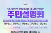 [ 포에버뉴스 김경순 기자 ] 성남시는 수정·중원 생활권 재개발 후보지로 선정된 5개 구역의 정비계획 수립 및 정비구역 지정(안)과 관련해 주민 의견을 수렴하고자 오는 3월 25일부터 31일까지 주민설명회를 개최한다. 이번 설명회는 수진2구역, 태평2‧4구역, 산성구역, 단대구역, 상대원1‧3구역을 대상으로 하며, 구역별 정비계획 수립(안)과 향후 추진 절차를 안내하고 주민 의견을 폭넓게 듣기 위해 마련됐다. 설명회 일정은 △3월 25일 오후 2시 태평2‧4구역(수정구청 대회의실)을 시작으로 △3월 26일 오전 10시 산성구역, 같은 날 오후 2시 수진2구역(수정구청 대회의실) △3월 30일 오후 2시 상대원1‧3구역(중원구청 대회의실) △3월 31일 오후 2시 단대구역(수정구청 대회의실) 순으로 진행된다. 설명회에는 해당 구역 토지등소유자와 세입자를 비롯해 재개발 사업에 관심 있는 주민이면 누구나 참여할 수 있다. 시는 지난해 12월 사전 주민설명회를 통해 수렴한 의견을 이번 정비계획(안)에 반영했으며, 이번 설명회를 통해 추가 의견을 폭넓게 수렴할 계획이다. 아울러 주민설명회 이후