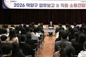 [ 포에버뉴스 김경순 기자 ] 고양특례시는 지난 26일 덕양구청 대회의실에서 ‘2026년 덕양구 업무보고 및 직원 소통간담회’를 개최했다. 업무보고에는 이동환 고양시장과 주시운 덕양구청장을 비롯해 구청 13개 과·21개 동행정복지센터의 부서장, 8·9급 저연차 공무원 등 100여 명의 직원이 참석했다. 2026년 업무보고는 주시운 덕양구청장과 부서장의 보고를 통해 민선8기 덕양구 핵심 성과와 2026년 업무 추진 방향을 간략히 공유하고, 직원들과의 자유로운 토론 시간을 확대해 현장의 목소리를 청취하는 데 중점을 뒀다. 이날 부서별 업무보고와 관련해 이동환 시장은 ▲덕양구를 대표하는 창릉천 유채꽃·코스모스 축제의 성공적 개최를 위한 주관 부서와 행신2동 행정복지센터의 적극적인 협조 ▲지적재조사 사업 등 시민 불편 해소를 위한 주요 사업의 속도감 있는 추진을 당부했다. 특히 20~30대 직원들과 격의 없이 소통하는 자유토론 시간이 눈길을 끌었다. CES 2026에서 고양시에 도입하고 싶다고 생각한 기술 분야, 전 세계적인 주목을 받은 ‘고양콘’에 대한 궁금증 등 다양한 주제로 활발한 의견 교환이 이어