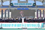 [ 포에버뉴스 사공선 기자 ] 제49회 군위군민 체육대회가 지난 1일 군위종합운동장에서 1만여 명의 군민과 출향인이 참여한 가운데 성황리에 막을 내렸다. 이번 대회는 ‘아름다운 변화 행복한 군위’란 슬로건 아래 전 군민이 화합을 다지고 소통을 나누는 축제 한마당으로 이뤄졌다. 앞서 1,500여 명이 참여한 가운데 진행된 전야제는 군위 출신 가수들의 식전공연으로 시작되어 군위군의 어린이들이 참여하는 패션쇼와 판소리 공연, 군위군의 스토리를 담은 뮤지컬 무대, 팝페라 등 다양한 공연이 진행됐으며, 공연의 끝으로 아름다운 불꽃이 가을 밤하늘을 장식하는 불꽃놀이로 전야제를 마무리했다. 본행사는 선수단 입장식, 자랑스러운 군민상 시상, 개회선언 등을 시작으로 400m 계주, 줄다리기, 공굴리기 등 6개 종목의 경기에서 320명의 선수가 그동안 갈고닦은 실력을 겨뤄 효령면이 종합우승을 차지했다. 체육 경기가 끝난 후에는 김연자, 박현빈 등 인기 가수들의 공연과 함께 하는 무대를 통해 군민 모두가 화합되고 즐길 수 있는 시간을 가졌다. 신현수 군위군체육회장은 “오늘 하루는 지친 일상을 회복하고