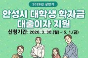[ 포에버뉴스 김경순 기자 ] 안성시는 대학생 및 대학원생들의 교육비 부담을 덜어주기 위해 ‘2026년 상반기 대학생 학자금 대출이자 지원사업’을 시행한다고 밝혔다. 지원 대상은 공고일(2026. 3. 24.)기준으로 안성시에 주소를 두고 있는 대학생 및 대학원생(휴학생 포함)이다. 신청 기간은 3월 30일부터 5월 1일까지이며, 신청을 희망하는 학생은 주소지 읍·면·동 행정복지센터 또는 안성시청(미래교육과)를 방문하여 신청서와 구비서류(주민등록등본, 재학증명서)를 제출하면 된다. 지원 대상자로 선정되면 대상자가 한국장학재단에서 대출받은 학자금에 대한 2025년 하반기(7월~12월) 발생 이자를 안성시가 지급하게 된다. 지급은 대출 계좌 원리금에서 차감하는 방식으로 진행되며, 지원 결과발표 및 이자는 오는 6월 지급 예정이며, 확정된 시점에 한국장학재단 인터넷 홈페이지 및 고객센터에서 확인할 수 있다. 안성시 관계자는 “학자금 대출이자 지원사업을 통해 대학생들의 학업 부담을 완화하고, 학업에 전념할 수 있는 환경을 조성하는 데 도움이 되길 바란다”고 말했다.