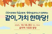 [ 포에버뉴스 김경순 기자 ] 가평군은 오는 18일 오전 10시부터 오후 3시까지 음악역 1939 광장에서 주민과 함께하는 축제 ‘2025년 같이, 가치 한마당’을 연다. 이번 행사는 사회적경제기업의 판로 확대와 마을공동체, 경기행복마을관리소의 활동 성과를 알리고 주민 참여를 확대하기 위해 마련됐다. 행사에는 사회적경제기업 5곳, 마을공동체 16곳, 경기행복마을관리소 4곳 등 총 25개 단체가 참여한다. 이날 주민들은 현장에서 직접 사회적경제기업의 제품을 구매할 수 있으며, 공동체별 특색 있는 프로그램을 즐길 수 있다. 주요 프로그램은 △사회적경제기업 생산품 홍보·판매 △공동체와 경기행복마을관리소 활동 전시 및 무료 체험 △합창·뮤지컬 갈라쇼·힐링체조 등 공연 △경품 이벤트 등이 마련돼 있다. 특히 가평마을교육공동체가 제작한 단편영화 상영 등 주민 주도 콘텐츠도 선보일 예정이다. 가평군 관계자는 “‘같이, 가치 한마당’ 축제를 통해 지역사회에서 사회적경제와 공동체 활동이 더욱 확산되기를 기대한다”며 “이번 행사가 지역경제의 활력으로 이어질 수 있도록 주민 여러분의 많은 방문과 성원을 부탁드린다”고