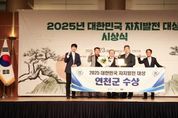 [ 포에버뉴스 김경순 기자 ] 연천군이 (사)한국자치발전연구원이 주관하는 '2025 대한민국 자치발전 대상'에서 기초자치단체 부문 수상자로 선정됐다. 시상식은 지난 23일 서울 용산구 백범김구기념관 컨벤션홀에서 개최됐다. 이번 수상은 연천군이 접경지역이라는 특수한 여건 속에서도 지역 자원을 활용한 독창적인 정책 추진, 주민 참여 확대, 맞춤형 행정 운영을 통해 지방자치 발전에 크게 기여한 공로를 인정받은 결과다. '대한민국 자치발전 대상'은 행정안전부 소관 (사)한국자치발전연구원이 주관하며, 국회의원·지방자치단체·의회·공무원·민간 부문 등에서 지방자치 발전에 기여한 개인과 단체를 선정해 시상한다. 특히 지방자치단체 부문은 단체의 업적을 중심으로 평가해 수여되며, 자치분권과 지역 혁신을 선도한 모범 사례를 널리 알리는 데 목적이 있다. 김덕현 연천군수는 “이번 수상은 연천군민과 함께 만들어낸 값진 성과”라며 “앞으로도 군민의 삶을 풍요롭게 하고, 지역 발전을 선도하는 자치행정을 지속적으로 펼쳐 나가겠다”고 소감을 밝혔다.