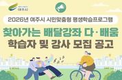 [ 포에버뉴스 박정배 기자 ] 여주시는 시민 누구나 원하는 시간과 장소에서 배움을 이어갈 수 있도록 지원하는 2026년 시민 맞춤형 평생학습 프로그램 ‘찾아가는 배달강좌’의 학습자와 강사를 모집한다고 밝혔다. ‘찾아가는 배달강좌’는 여주시민 또는 관내 사업체 근로자 7명 이상이 학습모임을 구성해 강좌를 신청하면, 전문 강사가 직접 찾아가 강의를 진행하는 학습자 중심의 평생학습 프로그램으로 이 사업은 평생학습 접근성을 높이고, 학습 사각지대 해소와 공동체 기반 학습문화 확산에 기여하고 있다. 학습자 ‘다·배움’모집은 2026년 2월과 5월(각 1~10일) 진행되며, 선정된 학습모임은 강좌당 최대 20시간 이내에서 무료로 교육을 받을 수 있으며, 강사 ‘다·선생’모집은 1월과 4월(각 20~25일) 두 차례 진행되며, 선정된 강사는 학습모임과 매칭돼 강의를 진행한다. 특히, 2026년부터는 기존 일반강좌 외에도 정책 연계형 특화강좌가 새롭게 운영되어 ▲경력단절 여성의 사회 재도약 ▲생활밀착형 생성형 AI 활용 교육 ▲농업·생태·전통문화 융합형 미래인재 양성 등 시민의 생애주기와 지역 특성을 반영한 맞춤형 학습으로