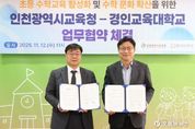 [ 포에버뉴스 김경순 기자 ] 인천광역시교육청은 12일 초등 수학교육 활성화와 수학 문화 확산을 위해 경인교육대학교와 업무협약을 체결했다고 밝혔다. 이번 협약에는 ▲‘쉬운 수학, 즐거운 수학’ 교구·교재 보완자료 개발 자문 ▲수학교육 문화 확산을 위한 학교 지원 프로그램 운영 협력 ▲ 수학교육 관련 학술교류 및 공동 연구 추진 ▲초등교원의 수학교육 전문성 강화를 위한 연수 지원 등이 포함됐다. 시교육청은 지난 6월부터 경인교육대학교 산학협력단 산하 수학교육문화연구원과 협업해 초등 3~6학년 대상 ‘이중수직선’, ‘움직이는 도형판’등 교구 2종과 교재 6종을 개발 중이며, 오는 11월 4주에 교원 희망 신청을 받아 자료 보급과 활용 워크숍을 진행할 예정이다. 인천시교육청 관계자는 “학교 현장의 의견을 반영해 초등 수학교육의 혁신적 성장과 질적 향상을 위한 협력 기반을 마련했다”며 “학생들의 수학적 탐구심과 자기주도적 학습 성장을 지원할 수 있도록 지속해서 협력하겠다”고 말했다.
